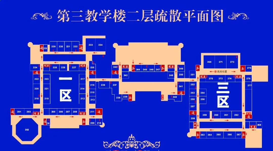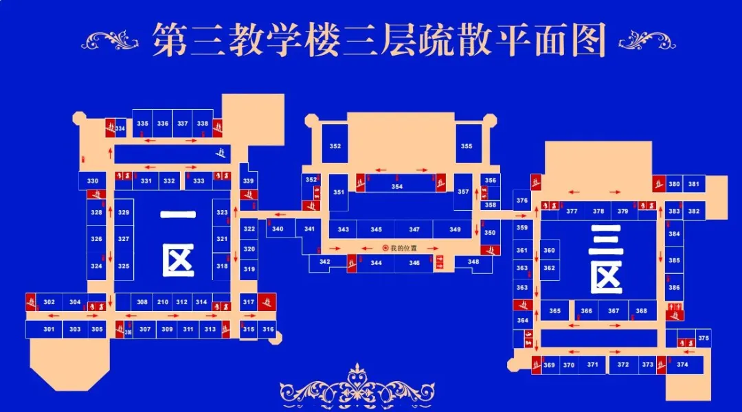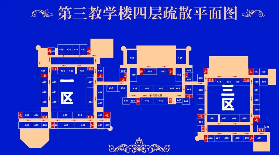 以下为第三教学楼1~4楼教室分布图,请通过扫描二维码,确定好对应考场的教室编号。