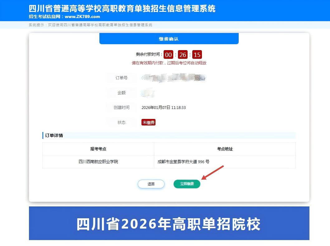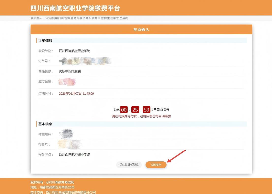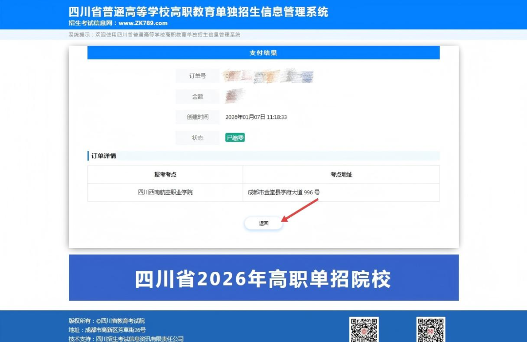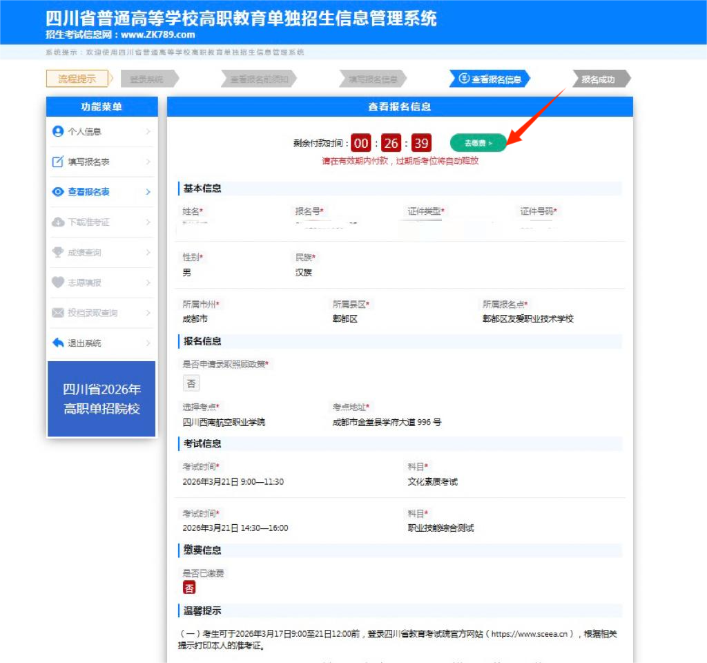 (温馨提示:缴费成功后,如需要更改是否申请录取照顾政策,可重新登录系统进行修改。)