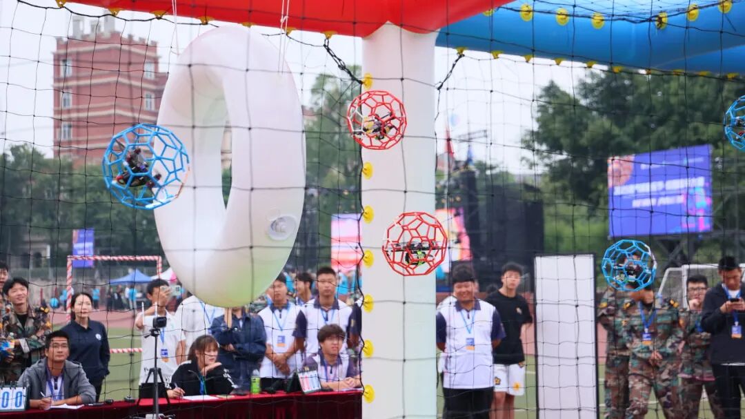 上午9:30,选手们在定制场地中进行3V3“空中足球”对抗,以精湛的操控技术实现攻防转换,现场气氛紧张热烈。同步进行的“穿越机竞速”赛场,无人机在低空赛道中高速穿行、急转翻飞,展现出参赛选手卓越的飞行控制能力,引来观众阵阵掌声。