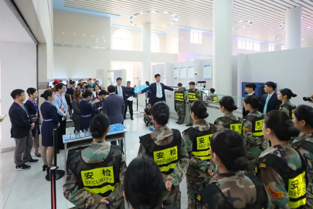 步入凯旋门,太阳广场与第一教学楼熠熠生辉。凤凰女子仪仗队英姿飒爽,礼仪秀表演充分展现西航学子风采;走进领先实训中心,沉浸式感受民航安检、乘务、机务高度还原全流程真实工作场景的实践课程;足球场上,无人机拉起欢迎条幅,空保学员们以实战化姿态完成格斗演练。