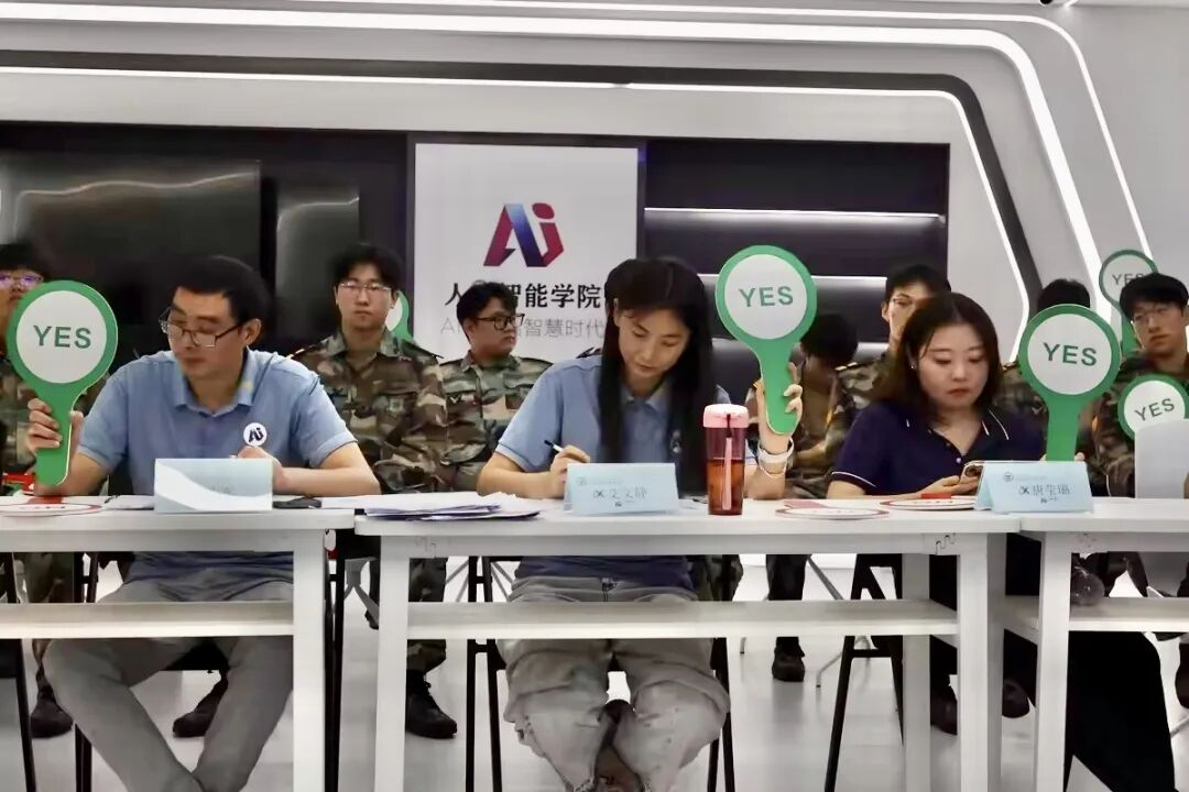 活动同步开启常规赛道、多元赋能赛道、特色创新赛道,聚焦 AI 行业核心岗位需求,针对性评估新生核心素养。为让新生更深入理解 AI 行业面试逻辑,活动创新保留 “角色互换” 特色环节:每组 10 名新生完成面试后,立即转换身份组成临时评委组,观摩下一组面试过程。他们需从 “技术表达清晰度”“职业形象适配度”“问题应答逻辑性” 三个维度进行点评,最终以 “yes(符合 AI 岗位基础要求)/no(需重点改进)/ 待定(潜力待挖掘)” 举牌给出评价。此过程中,新生通过 “评委视角” 直观感受 “AI 企业看重什么”,进一步明晰就业市场对 “技术能力 + 职业素养” 的双重需求。