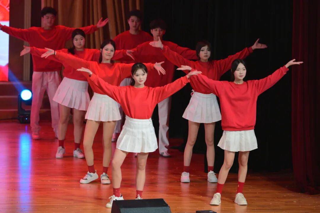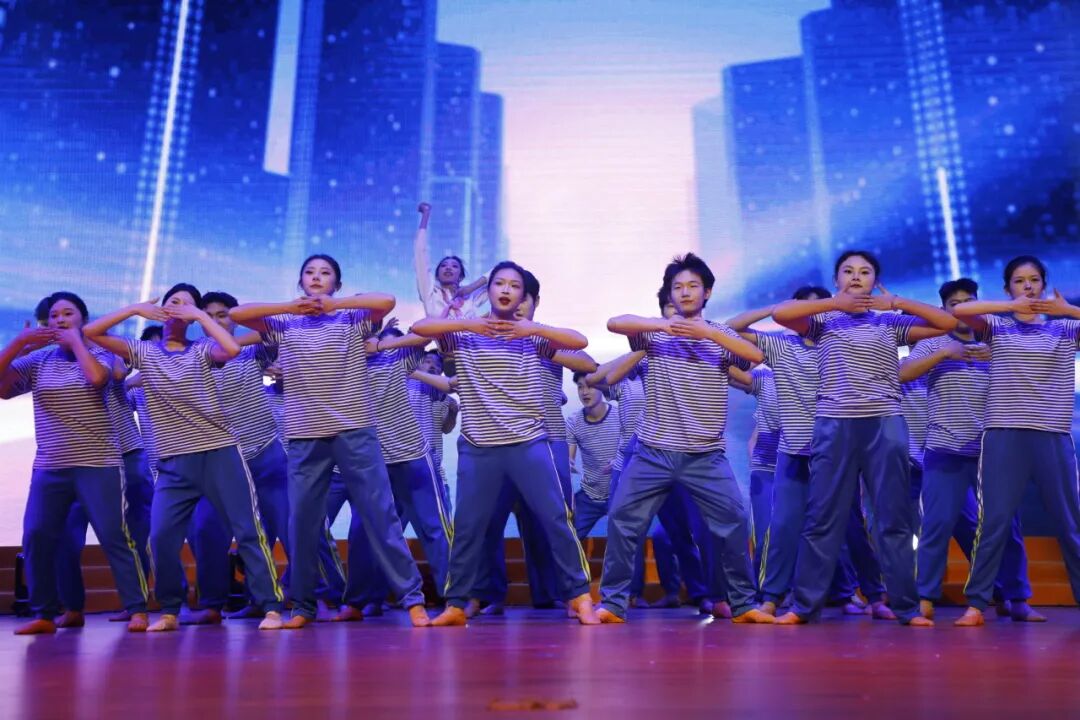 《爵色魅影》空中乘务学院指导老师:张文玥 樊璐,爵士的节奏与青春的活力碰撞,舞步洒脱,转身惊艳,瞬间点燃了全场的热情。紧接着,在灯光下,她们以身体诉说前行,步履坚定,向光而行,赋予每个人内心生长的力量。